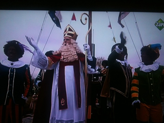 Sinterklaas arrives by boat into the Netherlands around the end of November. The have a big parade and everyone laughs and sings as the Bishop of Turkey/Spain is escorted from his yacht by his black slaves/helpers. After this happens, people say “he is in the country”.